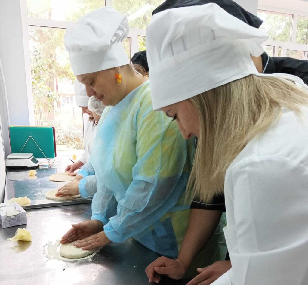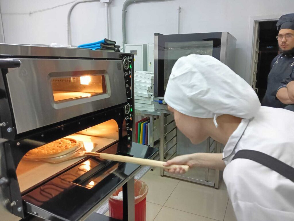 На днях женский клуб посетил Волгодонский техникум общественного питания и торговли – здесь прошел мастер-класс по приготовлению пиццы под руководством опытного шеф-повара Олега Глаголы. В нем приняли участие волгодончанки, которые ищут работу через Центр занятости. Каждая из участниц не только познакомилась с технологией процесса приготовления изделия из теста, но и самостоятельно выпекла пиццу «Пепперони». А еще по порции собственноручно приготовленного теста взяли домой, чтобы закрепить новые навыки и испечь вкусную еду для своих близких.