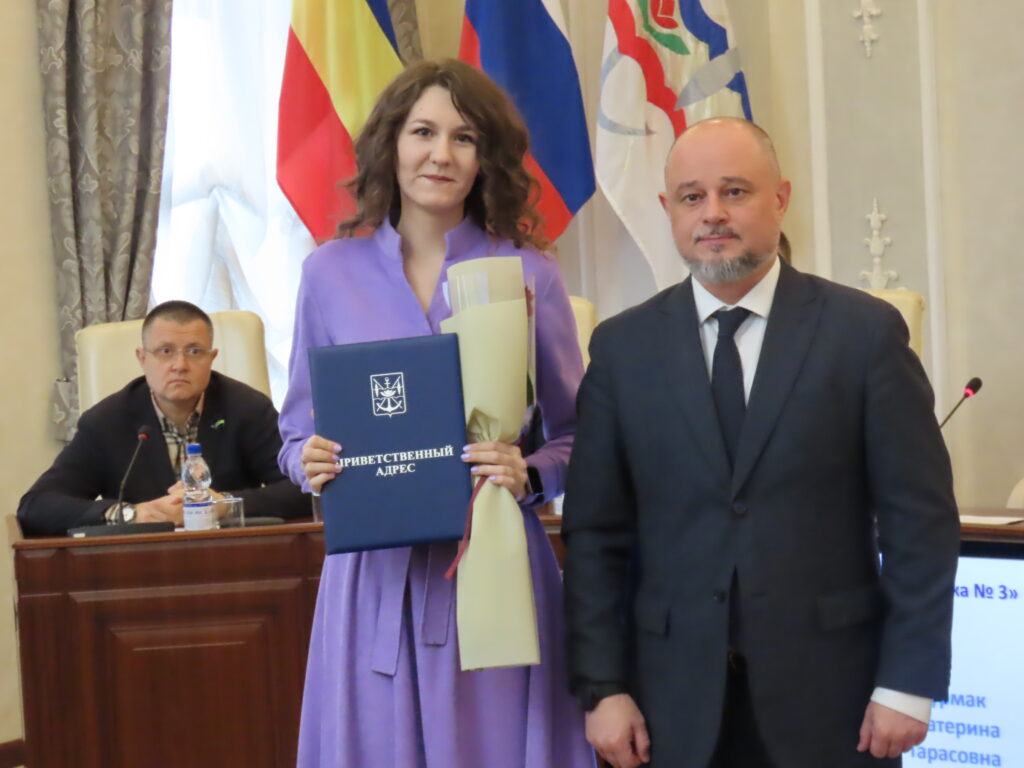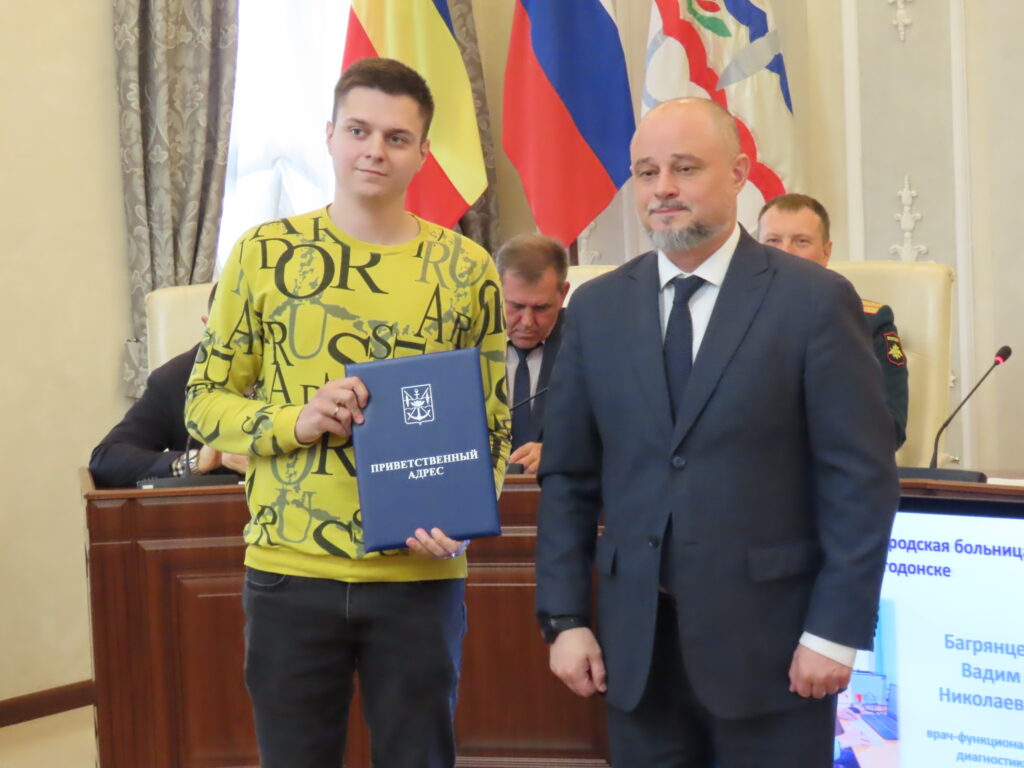 На расширенном планерном совещании состоялось награждение волгодонцев, приуроченное сразу к двум праздникам – Дню гражданской обороны, который отмечался 4 октября, и Международному дню врача (6 октября). Глава Волгодонска Дмитрий Вельможко вручил приветственные адреса молодым специалистам-медикам поликлиники № 3 Екатерине Курмак и Анастасии Пасько, а также детской городской больницы – Вадиму Багрянцеву, Валерии Титовской и Валерии Бухариной.