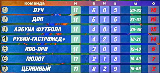 Итоговые таблицы чемпионата Любительской футбольной лиги Волгодонска 2025 года: