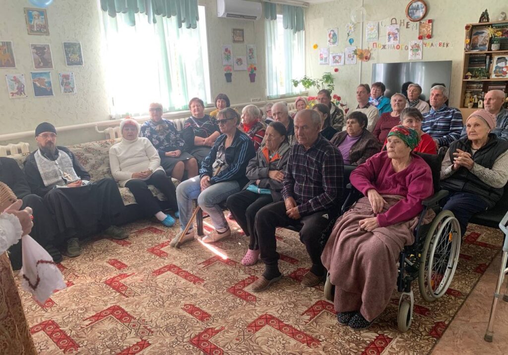 Общественники привезли с собой концертную программу и сувениры, сделанные своими руками. Русские народные и казачьи песни исполнил ансамбль русской народной песни «Вдохновение», а рукодельницы подарили каждому, кто живет в отделении, очешницу и маленького ангела. Подарков хватило всем — и тем, кто смог прийти на концерт, и тем, кто в силу болезни и немощи лежал в постели. Организаторы встречи пригласили в отделение священнослужителя иеромонаха Спиридона, чтобы он благословил праздник и прочитал проповедь на тему «Жизнь — дар Божий».