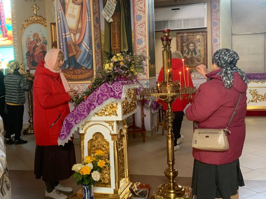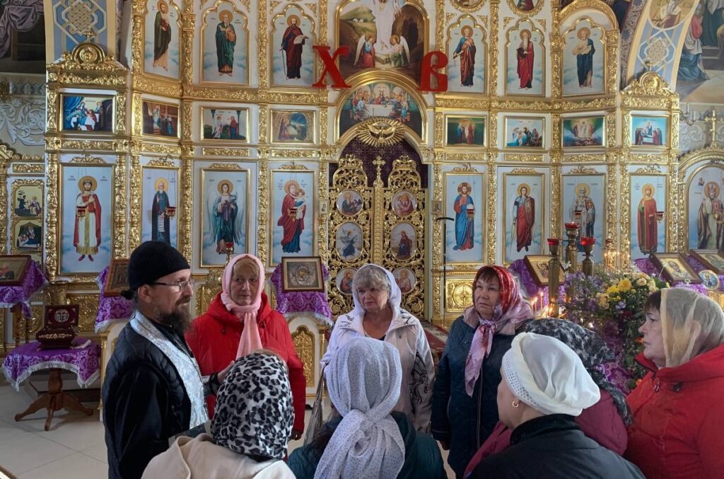 Затем волгодонцы посетили храм Святителя Николая Чудотворца в поселке Рябичи, на территории которого располагается и мужской монастырь. Храм поражает своим внутренним убранством, красотой росписи стен и купола, вышитыми иконами, великолепным иконостасом. Каждый из участников встречи нашел для себя что-то хорошее и важное. Для рукодельниц стало подарком посещение храма и слова благодарности пожилых людей, которым они вручили подарки.