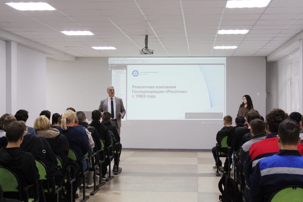 Представители «Волгодонскатомэнергоремонта» провели встречу со студентами Волгодонского техникума металлообработки и машиностроения (ВТММ), чтобы рассказать о возможностях, которые может предоставить им предприятие. На встречу пришли студенты второго курса направления «Мастер общестроительных работ», а также учащиеся третьего и четвертого курсов специальности «Эксплуатация и обслуживание электрического и электромеханического оборудования (по отраслям)».