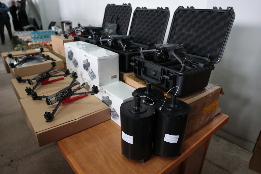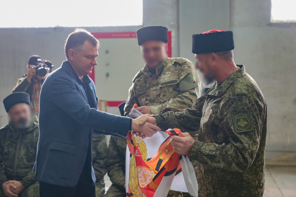 А самим бойцам Юрий Слюсарь передал от жителей Дона очередную партию квадрокоптеров, зарядных устройств и другого оборудования для обеспечения работы БПЛА, а также генераторов и маскировочных сетей. Военнослужащие, в свою очередь, вручили донскому губернатору копию знамени отряда «БАРС».
