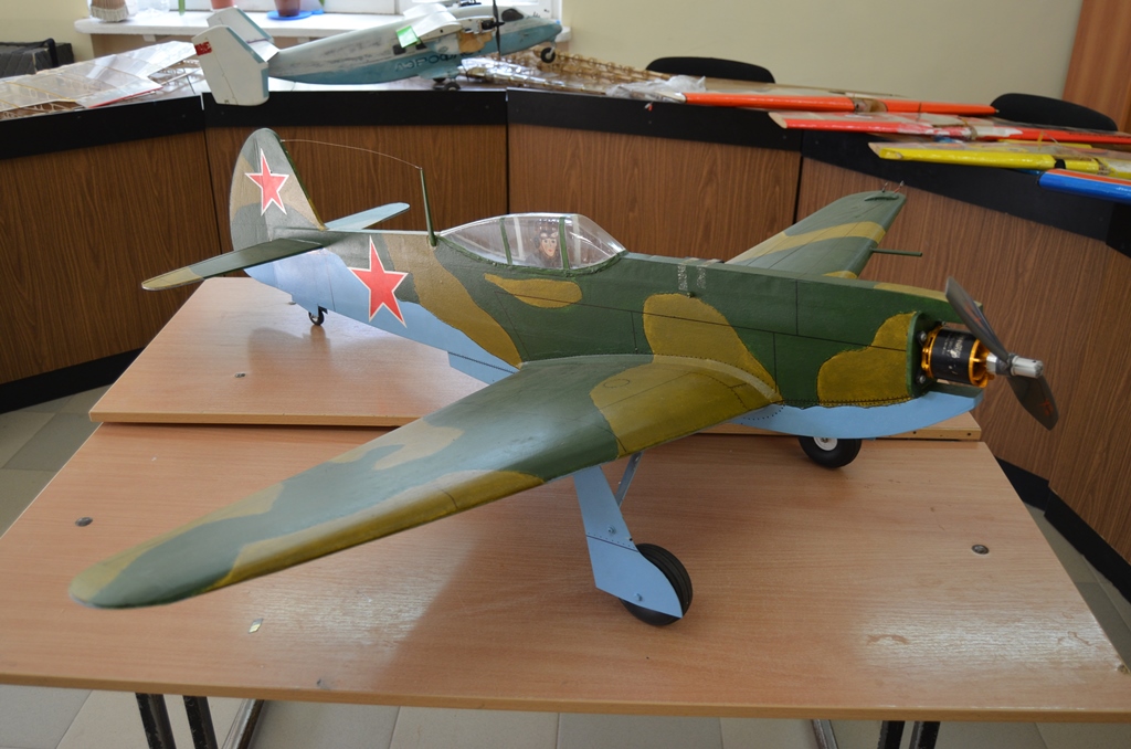 Артем Баранник (педагог Г.И. Парахина) представил жюри модель-копию военного самолета ЯК-3. Это масштабная радиоуправляемая модель, созданная для показательных выступлений и участия в соревнованиях по авиамодельному спорту. Модель с размахом крыльев 140 см, длиной 100 см и весом 2 кг точно воспроизводит облик легендарного истребителя времен Великой Отечественной войны.