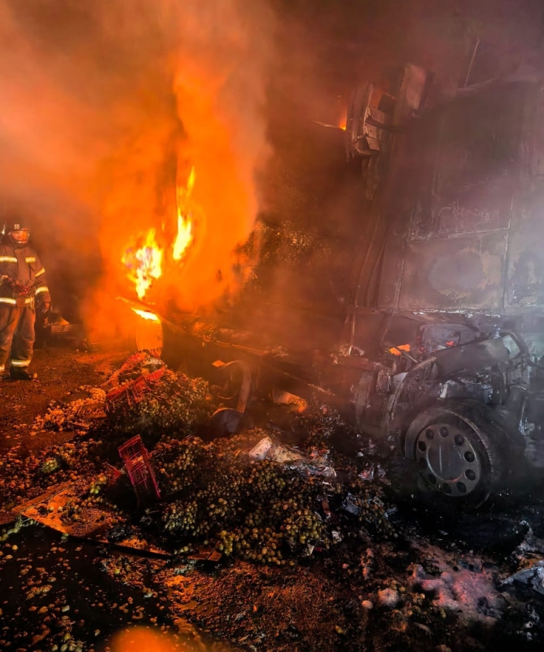 Там он столкнулся с грузовиком ДАФ с прицепом. В результате обе машины загорелись.