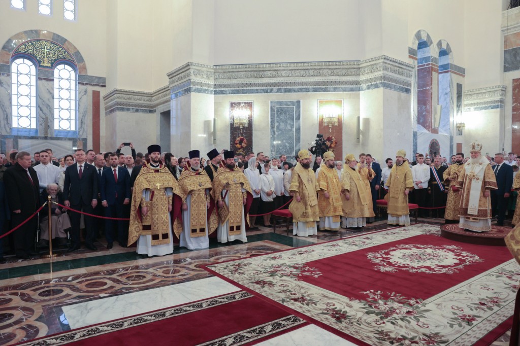 «Всех вас приветствую и поздравляю с этим историческим событием. Когда мы строим, освящаем храмы, мы закладываем фундамент для дальнейшего духовного, нравственного и всестороннего развития нашего народа, нашего общества, а через это – мощь нашего государства», — обратился к прихожанам патриарх Кирилл. Митрополит Меркурий в свою очередь назвал сегодняшнее событие долгожданным, к которому шли все эти годы.