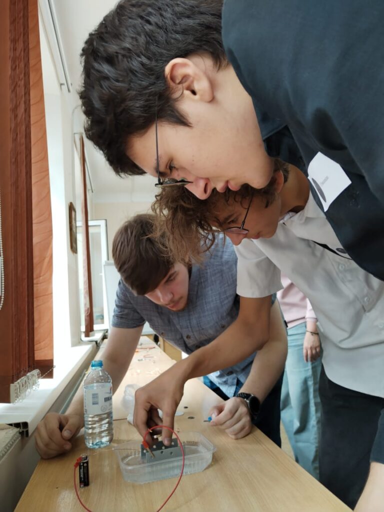 Интенсив был построен как соревнование проектных команд с тёплыми, запоминающимися названиями — «Амперчики», «Фарадейчики», «Омики», «Теслики», «Эдисончики». Участникам предстояло выполнить ряд практических заданий: создать как можно больше устройств, преобразующих электрическую энергию в механическую, и продемонстрировать работу «лимонной батареи» как автономного источника тока, способного запитать светодиод.