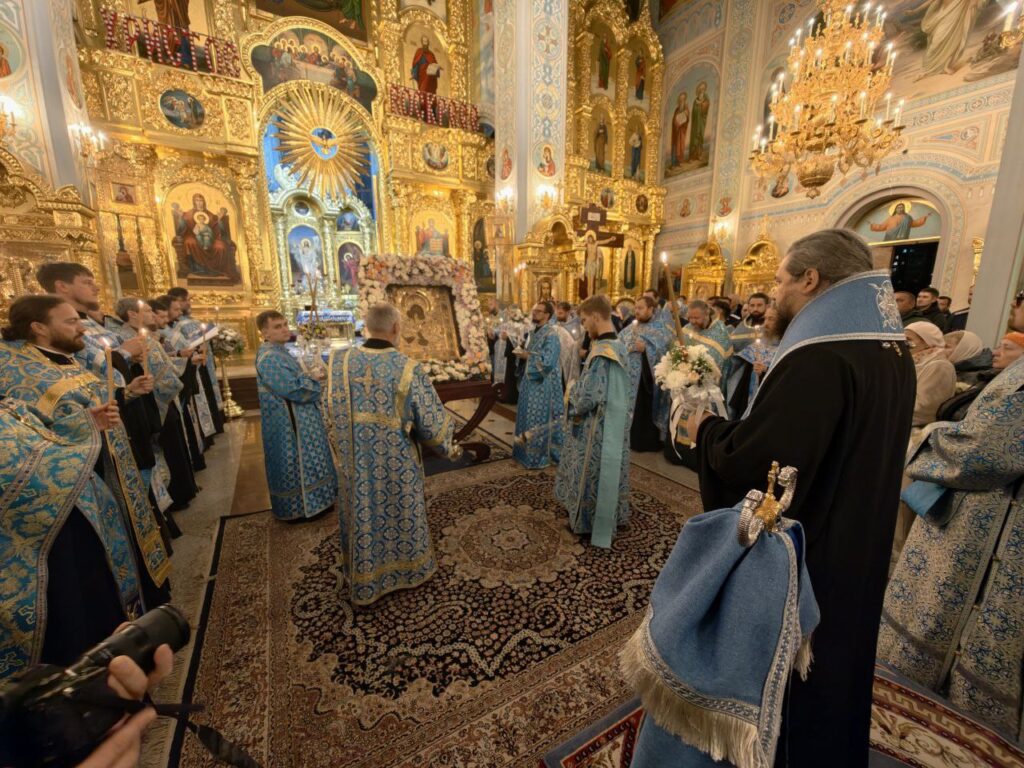 Затем икону встретили в Кафедральном соборе Рождества Христова в Волгодонске. Прибывшая крестным ходом по реке Дон святыня ознаменовала 10-летие принесения образа на нашу землю. Уникальный список содержит частицу пояса Пресвятой Богородицы и является одной из главных святынь Русской православной церкви. Торжественный молебен совершил епископ Волгодонский и Сальский Антоний. В нем принял участие глава города Дмитрий Вельможко.