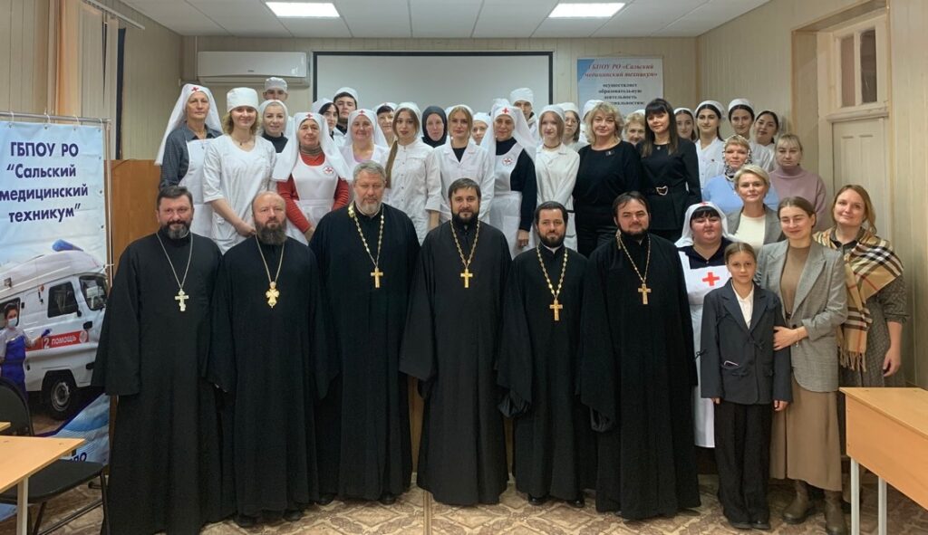 В Сальском медицинском техникуме в рамках XXX Димитровских чтений прошла конференция «Многогранность социального служения как миссия милосердия и просвещения». Ее организатором выступил епархиальный отдел церковной благотворительности и социального служения Волгодонской епархии совместно с Сальским благочинием. Цель конференции — отразить опыт социального служения Донской митрополии для будущего медицинского и социального сообщества, отразить практический опыт социального служения трех епархий Донской митрополии и гуманитарной Патриаршей миссии.