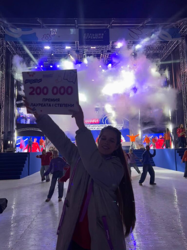 Ученица 10 класса Инженерно-технологической гимназии «Юнона» Волгодонска София Вакуленко принимает поздравления. Она стала абсолютным победителем 6‑го сезона Всероссийского конкурса «Большая перемена» в вызове «Твори» среди школьников 8–10 классов и обладателем приза в 200 000 рублей! Для Софии эта победа – результат пятилетней настойчивости и веры в себя.