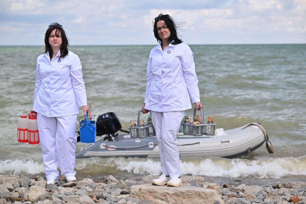 Ежемесячно специалисты лаборатории ОООС отбирают пробы воды для анализа в семи точках водоема-охладителя Ростовской АЭС и в одиннадцати точках Цимлянского водохранилища вдоль плотины. Всего пробы анализируются по двадцати основным компонентам, и для этих исследований требуется около 120 литров бидистиллированной воды ежемесячно.