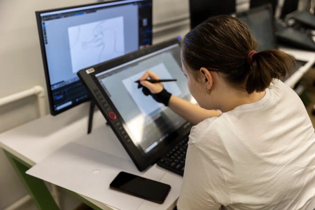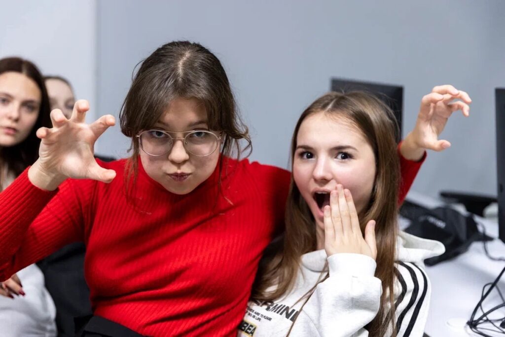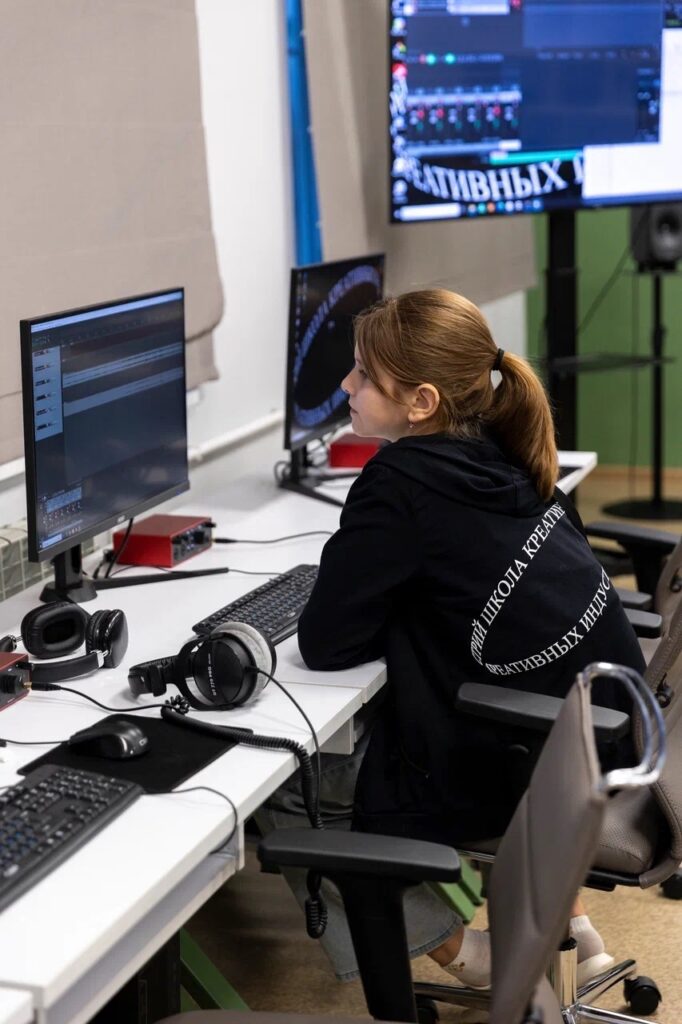 При этом жизнь в школе кипит не только вокруг опытных исполнителей. Новое поколение талантов уже делает свои первые шаги. Например, в студии «Фото- и видеопроизводство» под чутким руководством преподавателя Аллы Баранниковой первокурсники активно осваивают профессиональные навыки.
