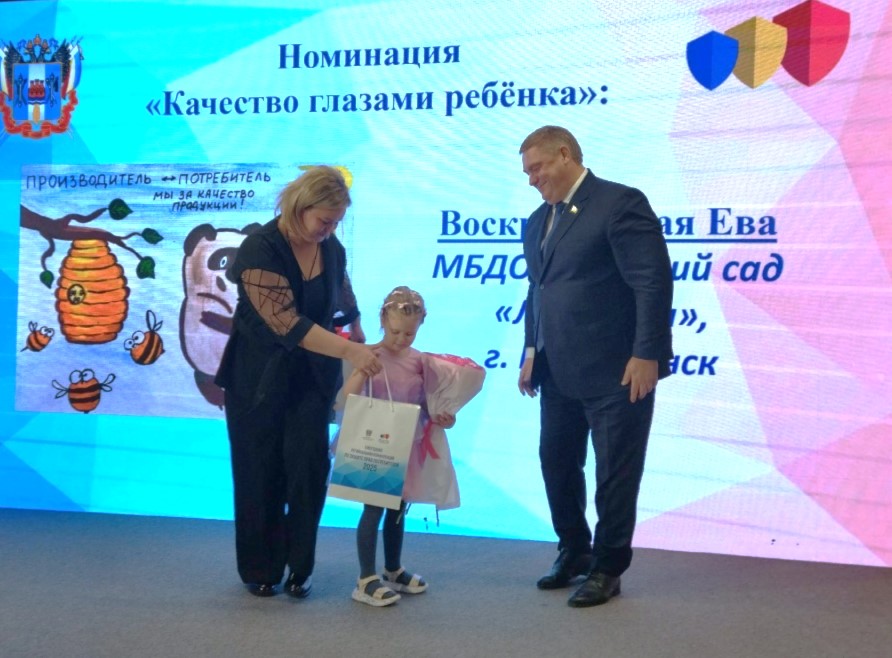 Еще одной яркой победой для Волгодонска стало участие в выставке рисунков Евы Воскресенской из нашего детского сада «Лазорики» — ее работа удостоилась первого места. Диплом победителя юной волгодончанке вручил лично первый заместитель губернатора Ростовской области Алексей Господарев.
