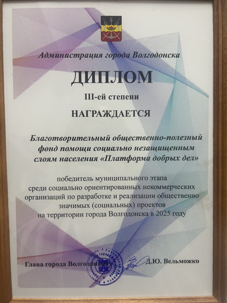 Фото: Благотворительный общественно полезный фонд помощи социально незащищенным слоям населения «Платформа добрых дел»