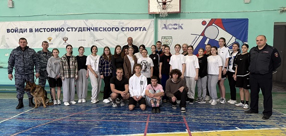 А сотрудник кинологической службы вместе со своей служенной собакой продемонстрировали студентам элементы дрессировки.