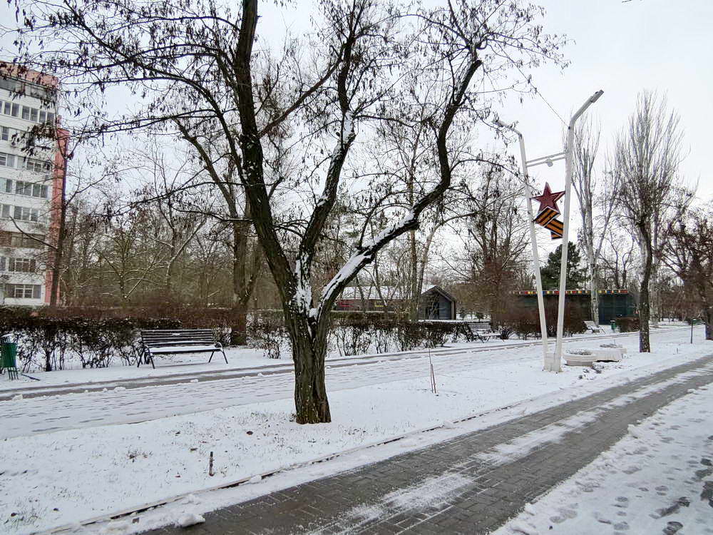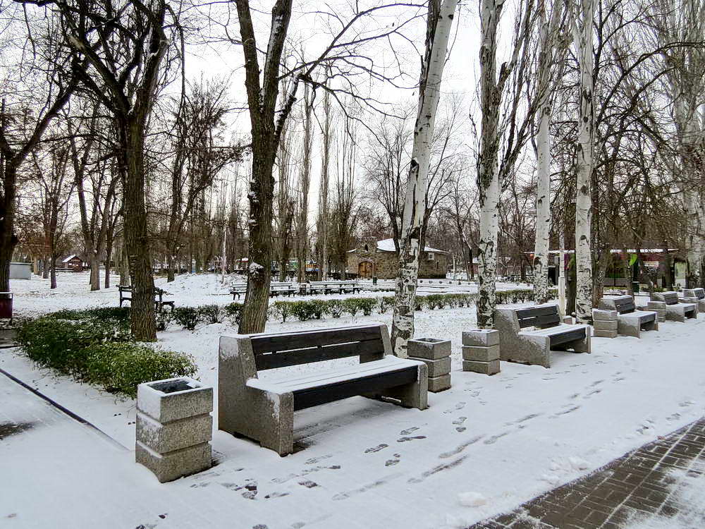 Серебристым снежком в нашем парке аллеи усыпала,