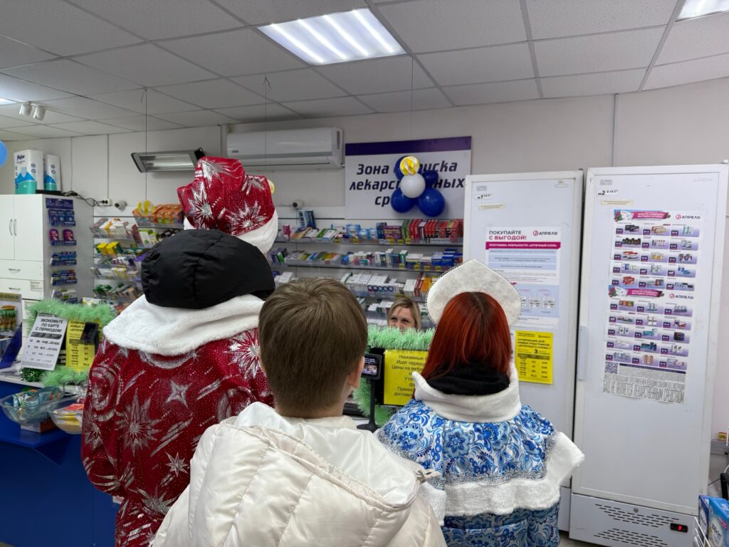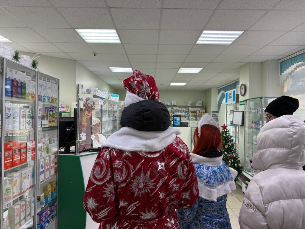 В образах Деда Мороза и Снегурочки ребята отправились поздравлять сотрудников ЖЭК, фармацевтов, продавцов, консультантов в магазинах и работников пункта выдачи заказов. Порадовали своими работами и искренними пожеланиями благополучия, здоровья и успехов в наступающем году.