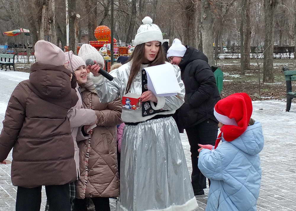 Сегодня, 27 декабря, в парке Победы состоялась замечательная развлекательная новогодняя программа для детей и подростков под названием «Время чудес». Несмотря на ненастную погоду, собравшиеся ребята смогли насладиться атмосферой праздника. К сожалению, из-за сырой погоды и холодного ветра количество участников было немного меньше, чем ожидалось. Однако те, кто пришел, не пожалели о своем выборе.