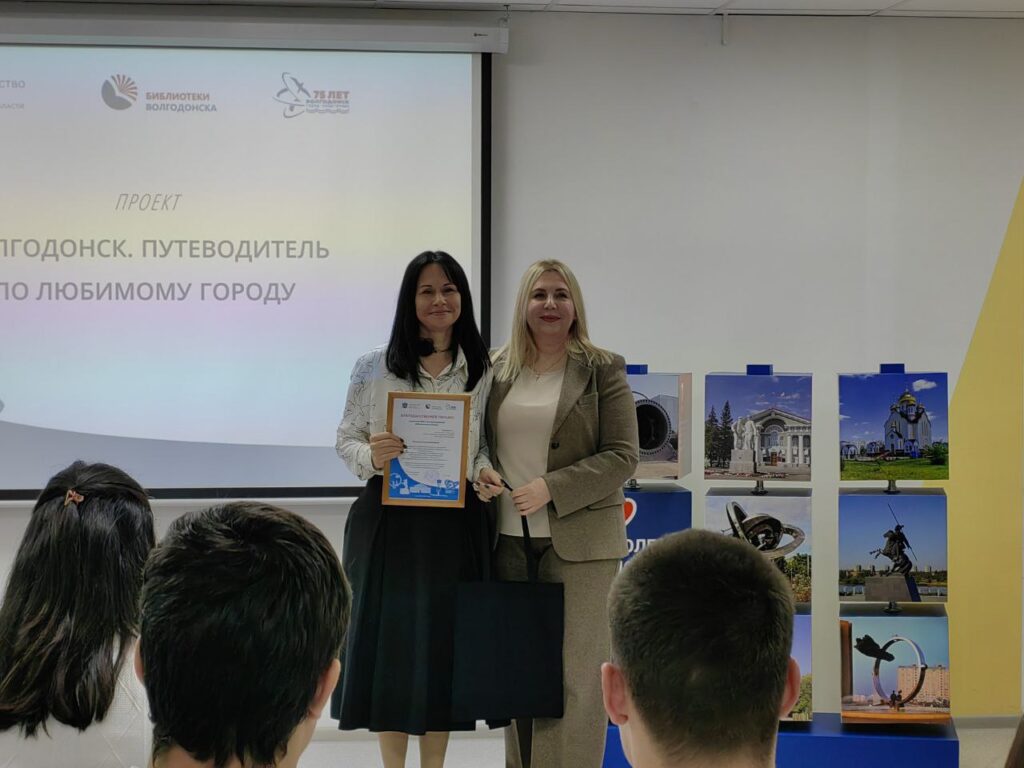 На мероприятии также подвели итоги городского турнира «Волгодонсковедение». По итогам серии игр победу среди общеобразовательных учреждений завоевала команда гимназии «Шанс», а среди сузов – команда Волгодонского техникума общественного питания и торговли. Всем участникам проекта подарили экземпляры путеводителя «Волгодонск. 75 достопримечательностей любимого города».