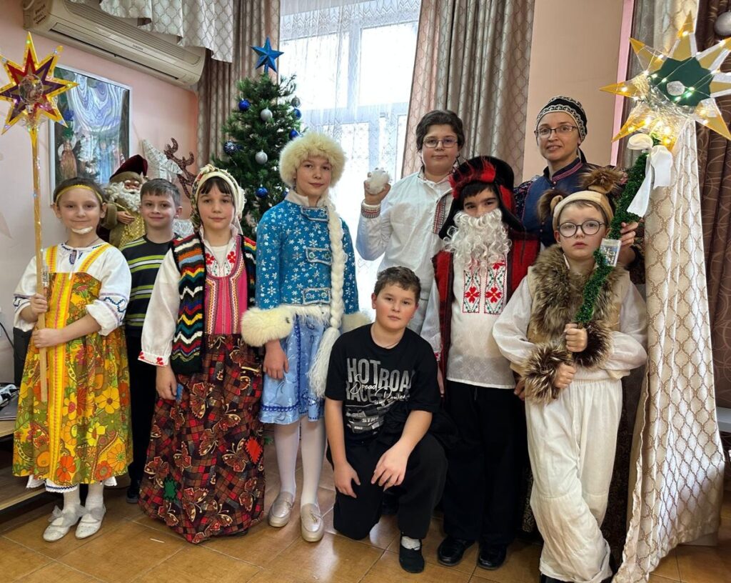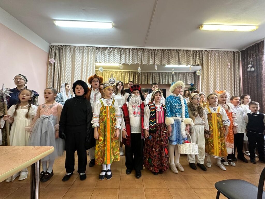 Дети исполнили рождественские колядки и духовные песнопения для проживающих в пансионате, а затем показали театральное представление — историю Снегурочки, пронизанную темами любви, заботы и веры в Господа.