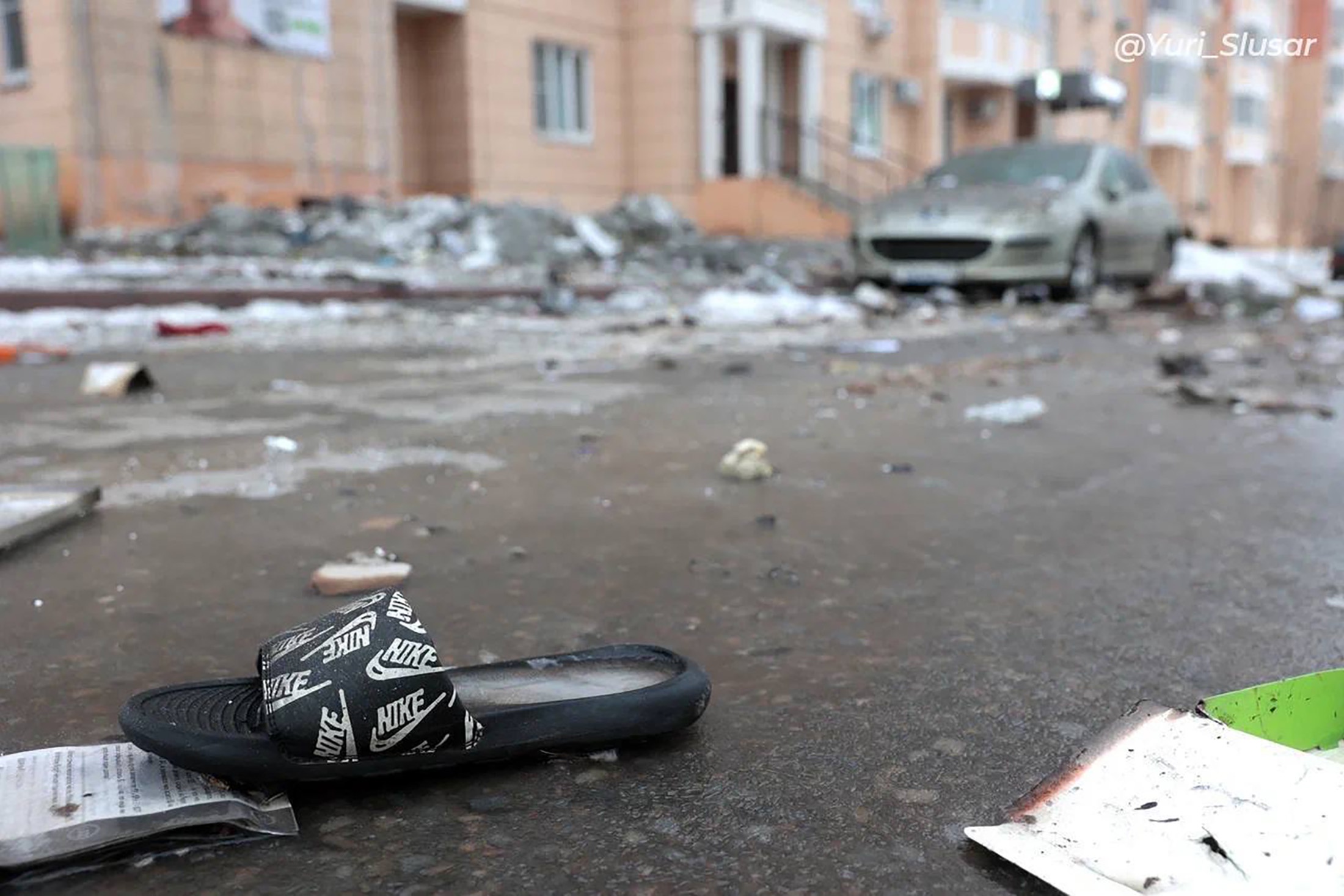 На фотографиях с места ЧП видно, что дрон-камикадзе нес термический боезаряд, который спровоцировал возгорание в квартире на 14-м этаже многоэтажки. В помещении находилась семья из трех человек. Когда начался пожар, женщине удалось вывести из квартиры четырехлетнего ребенка, а мужчина погиб на месте.