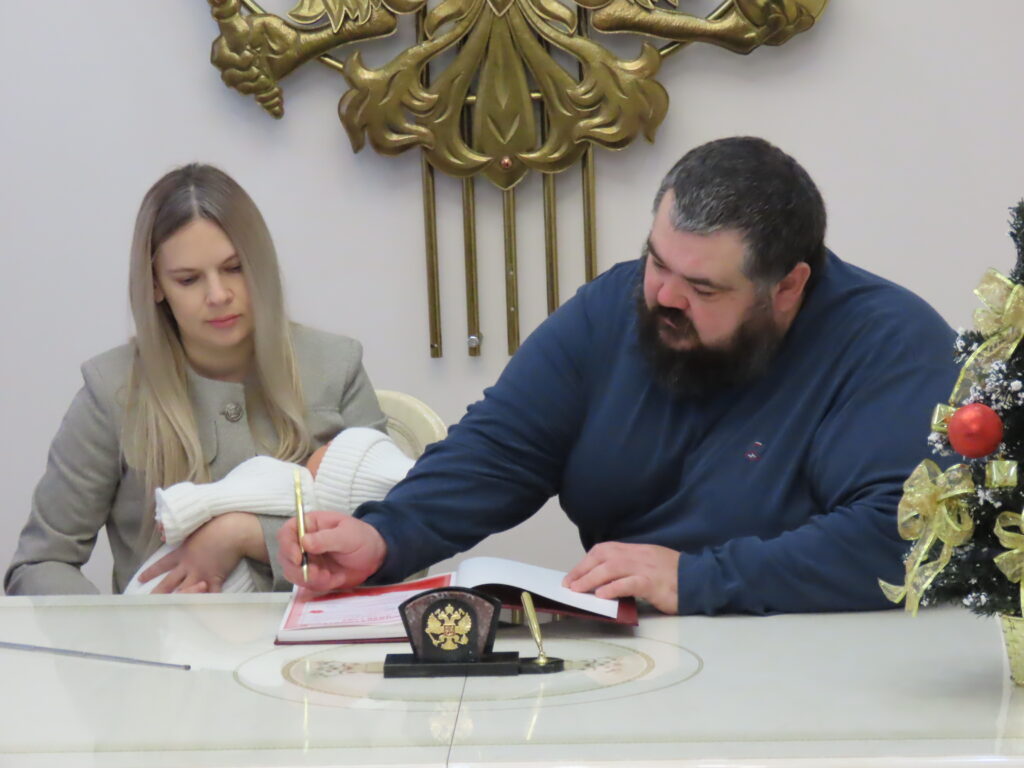 Уже 15 лет в нашем городе существует чудесная традиция – торжественная регистрация в отделе ЗАГС первого малыша, который появился на свет после боя новогодних курантов. И нынешний январь исключением не стал. В ЗАГСе распахнули двери для почетных гостей: юной Евдокии Жабской, ее мамы Валентины, папы Геннадия и близких новорожденной волгодончанки. На церемонию, которая была по-семейному теплой, пришли глава Волгодонска Дмитрий Вельможко, заместитель председателя городской Думы Игорь Батлуков, главный врач больницы №1 имени Виктора Жукова Виталий Иванов.