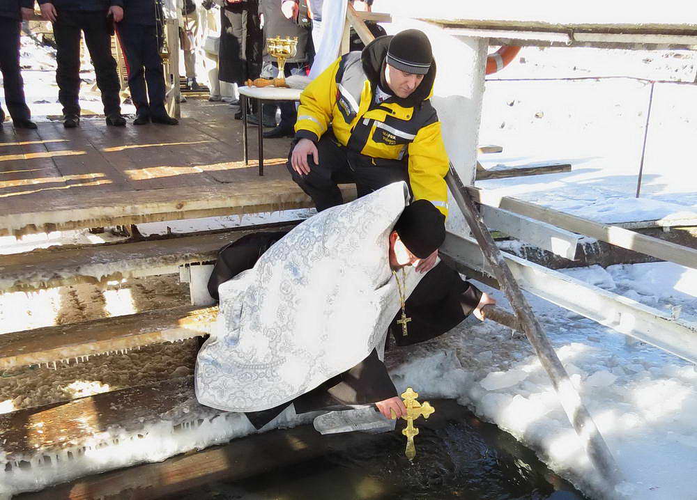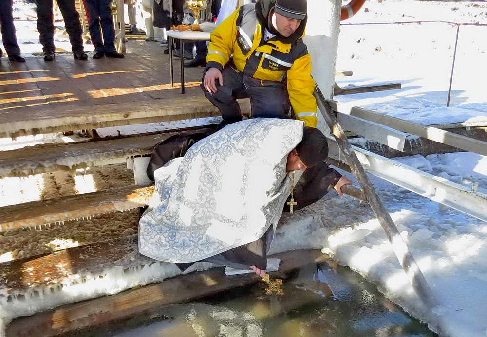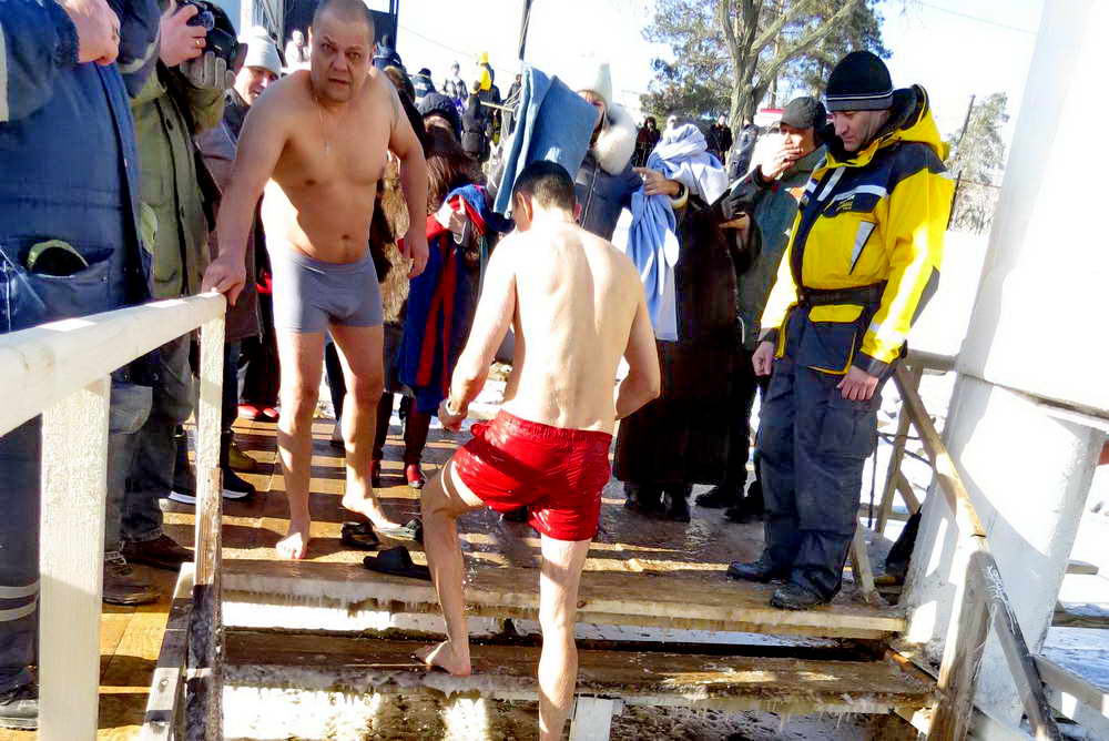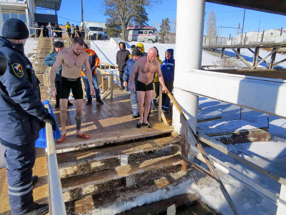 В условиях морозной погоды православные жители Волгодонска отметили Крещение Господне, погрузившись в крещенскую купель в городском порту.