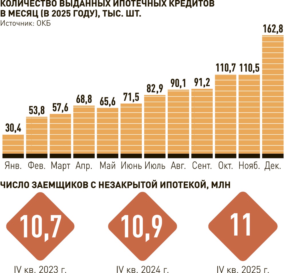 Рост числа выданных ипотечных кредитов в декабре во многом обусловлен ажиотажным спросом на займы по льготным программам, считает руководитель Аналитического центра «Индикаторы рынка недвижимости IRN.RU» Олег Репченко. Люди стремились оформить кредиты на жилье до корректировки условий семейной ипотеки, запланированной на февраль 2026 года.