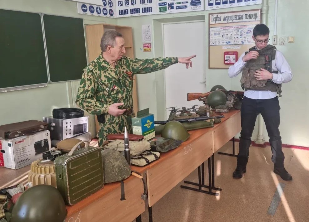 Руководитель городской организации ветеранов войны в Афганистане Александр Кириллов приехал в техникум с выездной экспозицией музея «Красная звезда». Он рассказал студентам об истории этой войны, задачах, которые выполняли под чужим небом наши военнослужащие, проявленном мужестве и героизме, воинских традициях Советских и Российских Вооруженных Сил. И, конечно, поговорили о боевых задачах, стоящих перед нашими бойцами в зоне СВО. Парни смогли подержать в руках образцы вооружения и примерить снаряжение, которые использовались в военных конфликтах.