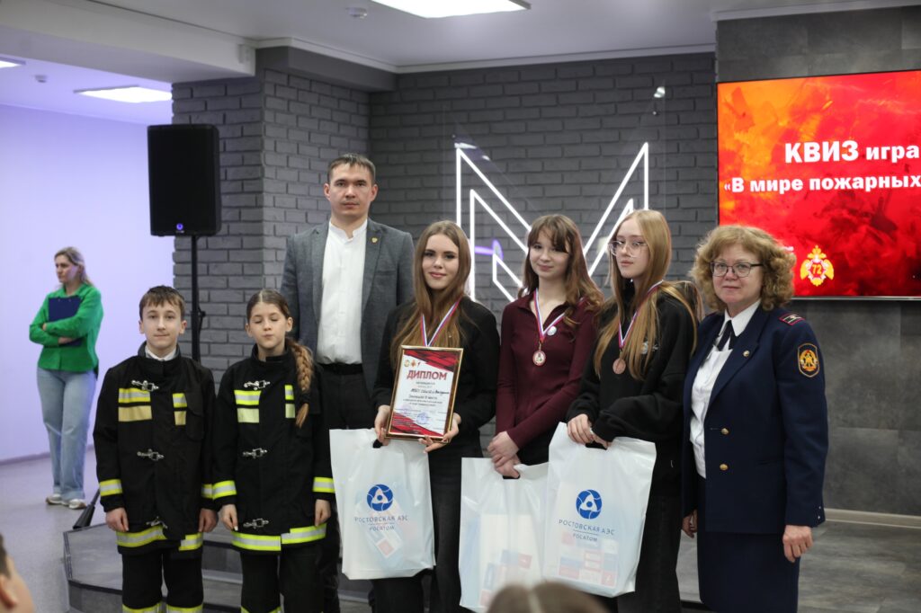 Торжественное чествование героев прошло в молодежном центре «Метро» ДК имени Курчатова. Школьники получили заслуженные грамоты и уникальный трофей — металлический кубок в форме огнетушителя с выгравированными именами участников. Поздравить финалистов пришли почетные гости, среди которых председатель совета ВДПО Ростовской области Василий Пилипец, представители городской Думы и Администрации, приехала также съёмочная группа телеканала «Дон-24».
