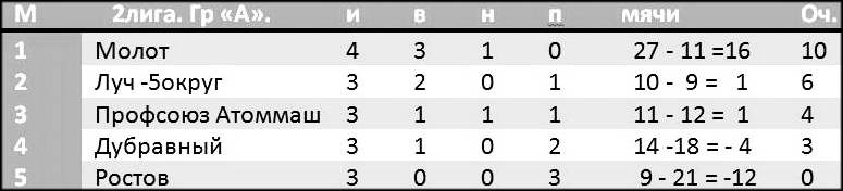 Положение команд группы «А» первой лиги: