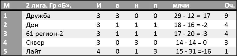 Таблица команд группы «Б» Второй лиги на 14 февраля выглядит так: