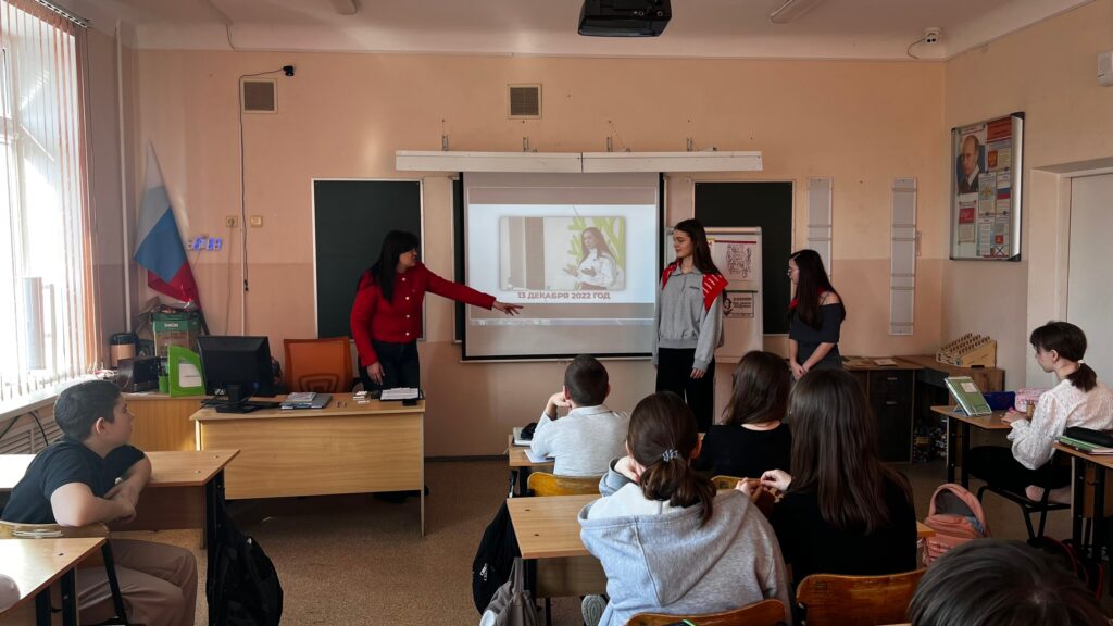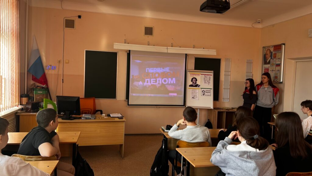 Но День памяти в школе №7 не замкнулся только на прошлом. Организаторы подчеркнули: Движение Первых — это не просто календарь памятных дат, а работа, которая связана с сегодняшними задачами и инициативами ребят. С информационной частью выступила специалист местного отделения Анастасия Каблучко. Она рассказала о деятельности Движения Первых в Ростовской области, обозначила важные события февраля и представила актуальные проекты, к которым школьники могут присоединиться уже сейчас — чтобы проявить себя, попробовать новые роли и найти дело по душе.