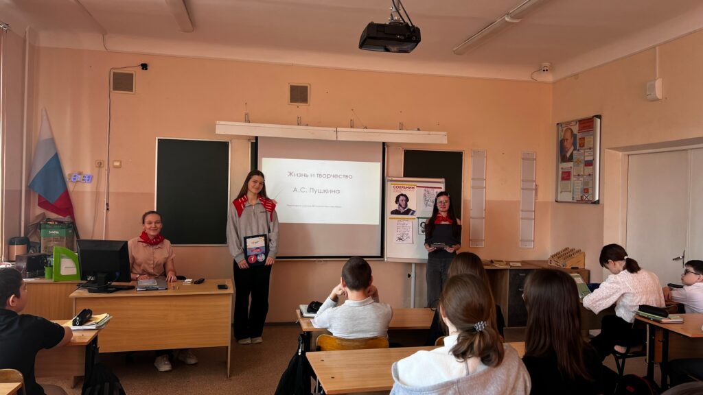 Связующим звеном встречи стало выступление председателя первичного отделения Дарьи Борисовой. Она подготовила блок о биографии Пушкина и увлекла ребят деталями, которые помогают иначе взглянуть на «классика из учебника»: каким он был в детстве, как рос и учился в Царскосельском лицее, что повлияло на становление его гения. Разговор о лицеистских годах вывел участников к теме дружбы, ответственности и личного роста — темам, понятным школьникам без перевода на взрослый язык.