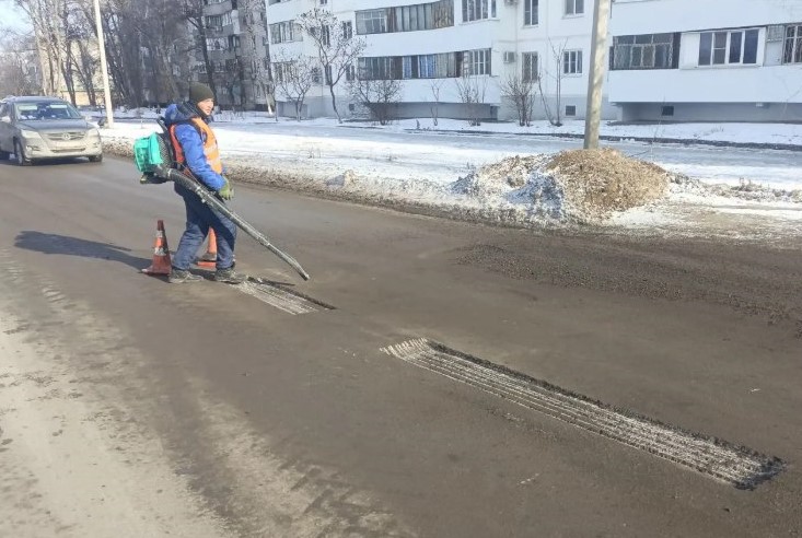 Между тем, вчера подрядная организация ИП Гвоздь устранила сверхнормативные деформации литой асфальтобетонной смесью в переулке Дзержинском (на участке от улицы Горького до улицы Пионерской). Несмотря на то, снег еще не растаял, ямы заделывают с помощью рециклера, который позволяет ремонтировать дороги зимой.