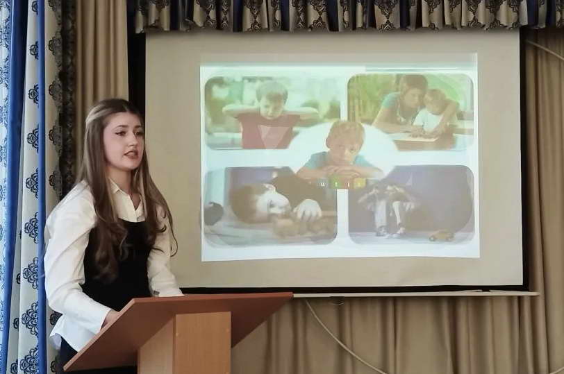 1 место присуждено Арине Дейникиной из гимназии №1 села Ремонтное. Арина под руководством И.А. Решетниковой провела исследования по детям с особенностями в развитии, представив жюри работу «Карта невидимых миров».