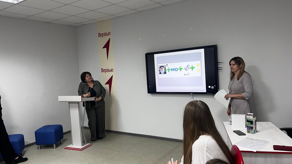 Но самый яркий момент мероприятия ждал участников впереди! Специалист местного отделения Движения Первых Анастасия Каблучко провела для активистов уникальную интерактивную игру — «Межгалактические выборы».