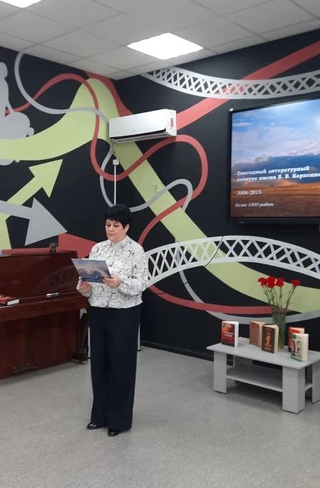 Уже более 20 лет коллектив волгодонской библиотеки имени Карпенко занимается изучением творчества Владимира Васильевича и популяризацией его произведений среди молодежи. В рамках Дня писателя «Владимир Карпенко – сын славного Дона» было организовано много познавательных литературных событий: встречи с городскими писателями и читателями, громкие чтения, историческая гостиная, виртуальное путешествие. А 19 февраля, в день рождения Владимира Карпенко, в библиотеке собрались те, кто лично знал писателя, а также литераторы Волгодонска, представители учреждений культуры, учащиеся Центра образования.