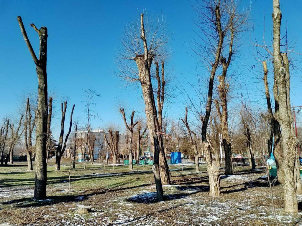 Это вынудило городские власти принять меры по восстановлению зеленых насаждений. В прошлом сезоне работы по обрезке деревьев были проведены на участке парка, прилегающем к спортивному комплексу. Однако эта глубокая обрезка вызвала негативную реакцию среди жителей. Люди начали замечать, что на многих старых деревьях были нанесены специальные знаки, такие как «А» и «О», которые указывали на необходимость проведения глубокой обрезки. Деревья, помеченные крестом, подлежали спилу полностью.