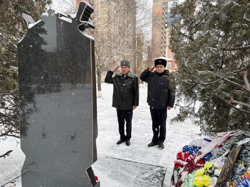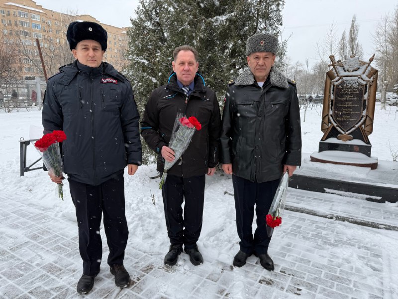 В канун Дня защитника Отечества состоялась церемония возложения цветов к мемориальному обелиску, установленному в память о погибших сотрудниках. В ней приняли участие начальник МУ МВД «Волгодонское» Михаил Шабельник, заместитель начальника управления — начальник отдела по работе с личным составом Олег Усачев, председатель Совета ветеранов МВД Сергей Тихонов. Минутой молчания почтили память павших героев, заплативших своими жизнями за порядок и безопасность в Волгодонске и на донской земле.