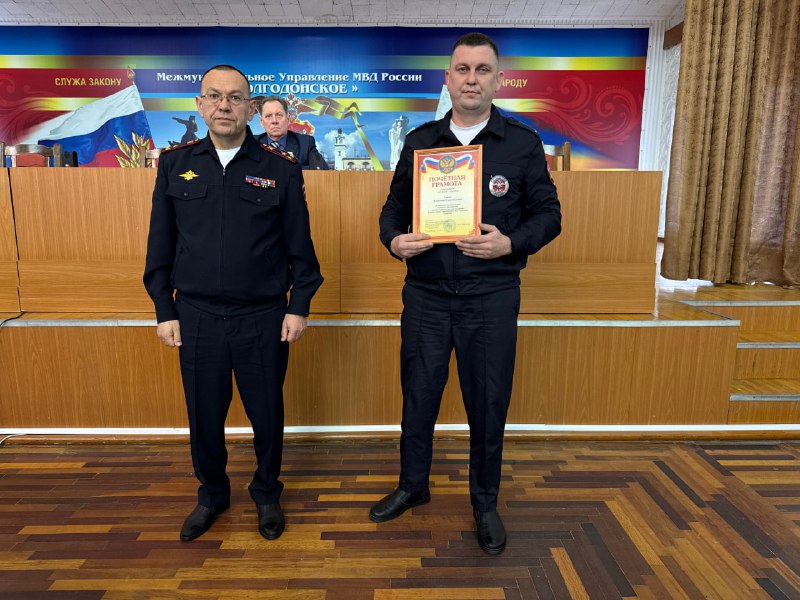 А затем в актовом зале межмуниципального управления Михаил Алексеевич поздравил личный состав с наступающим 23 февраля, пожелал здоровья, терпения, благополучия и профессионального успеха. Выразил благодарность всем сотрудникам органов внутренних дел за добросовестную службу, твердость характера, честность, справедливость и верность долгу. В торжественной обстановке отличившимся сотрудникам начальник МУ МВД «Волгодонское» вручил почетные грамоты.