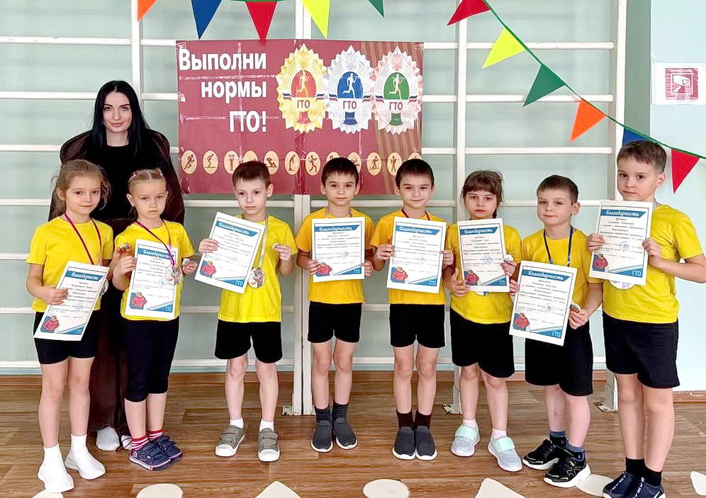 Участие здесь приняли более 100 детей от 6 до 7 лет в следующих видах испытаний: сгибание разгибание рук в упоре лёжа на полу (отжимания), наклон вперед из положения стоя с прямыми ногами на гимнастической скамье, прыжок в длину с места толчком двумя ногами, метание мяча в цель, поднимание туловища из положения лёжа на спине за 30 секунд. На золотой знак отличия сдали 55 человек, на серебряный 39 и на бронзовый 20 участников.
