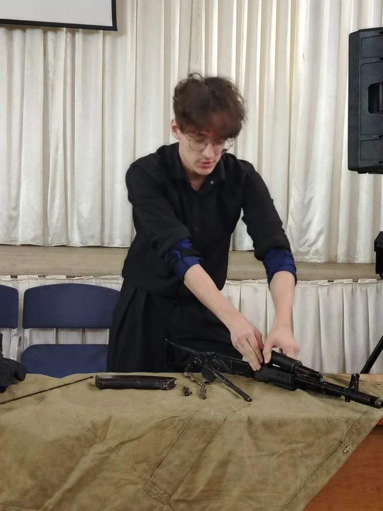 Гости познакомили студентов с деятельностью клубов «Атаман» и «Сфера», рассказали о своей волонтерской работе в зоне СВО. К студентам гости пришли не с пустыми руками. С собой они привезли экспонаты передвижной выставки современного оружия – того, что сейчас используется в ходе специальной военной операции. Рассказали о назначении, тактико-технических характеристиках каждого вида, показали приемы владения оружием. Ознакомили ребят с главными принципами и методами тактической медицины. Вместе со студентами отработали основные алгоритмы действий в той или иной угрожающей жизни ситуации. Ведь грамотное оказание само- и взаимопомощи в первые минуты после ранения крайне важно.