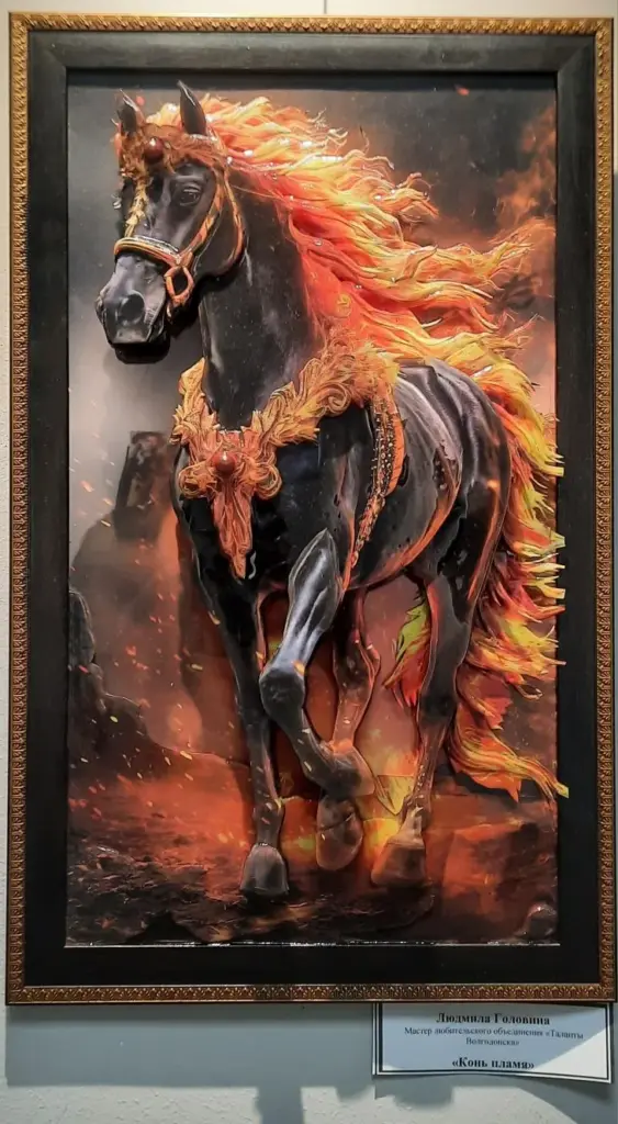 Всего пять лет назад открыв для себя это вдохновляющее искусство, Головина внесла в него свою лепту. Ей хотелось придать работам большей свободы без потери надежности. Убрав привычные стеклянные рамы-аквариумы. используя вместо лака ювелирное стекло, а вместо картонной основы – холст, Людмила Григорьевна превратила свои произведения в настоящие шедевры.