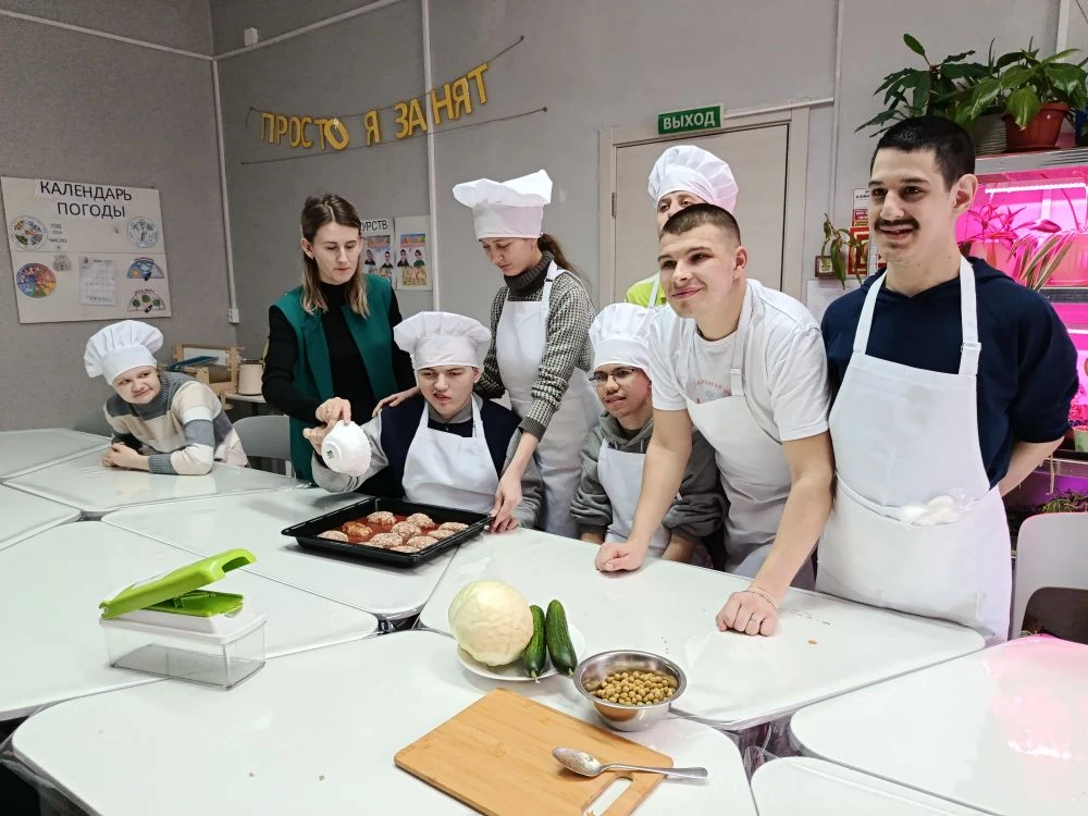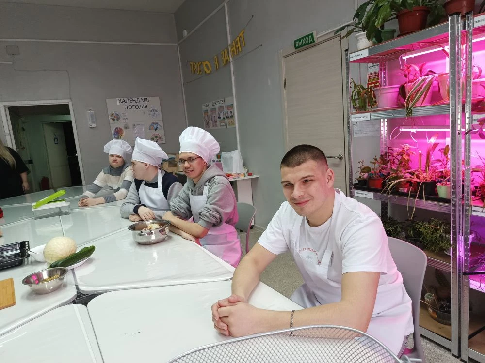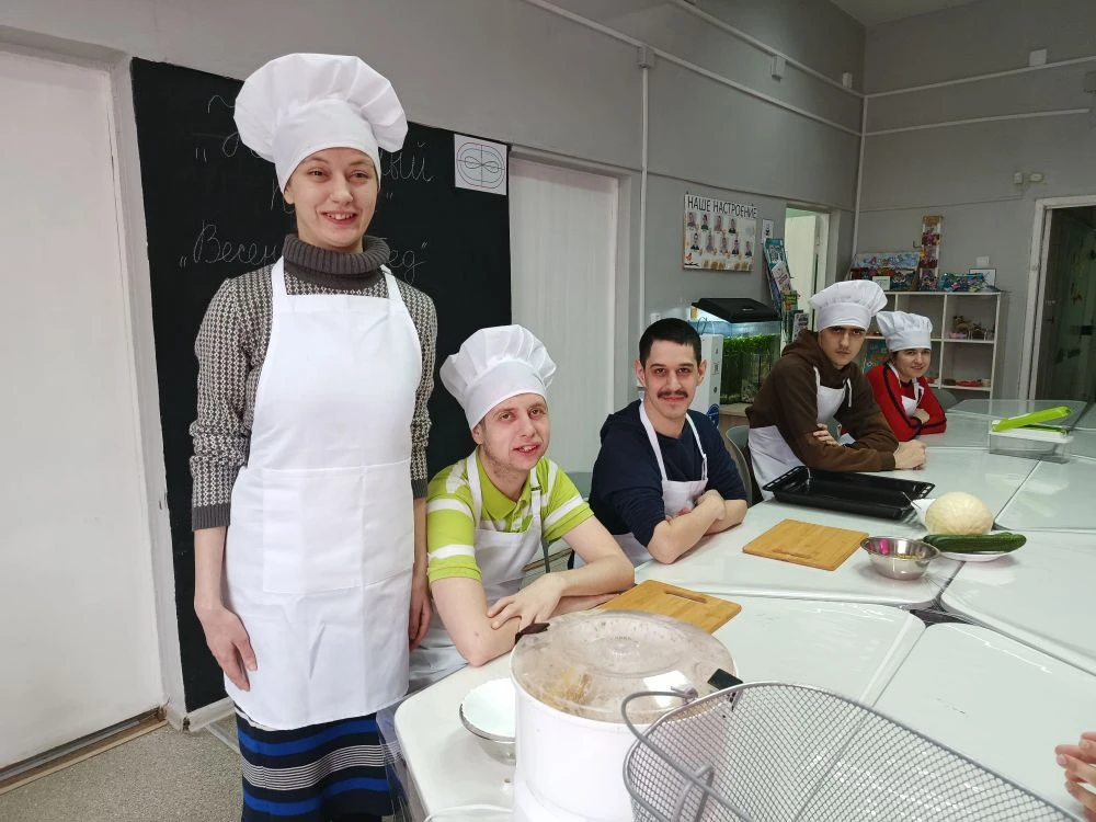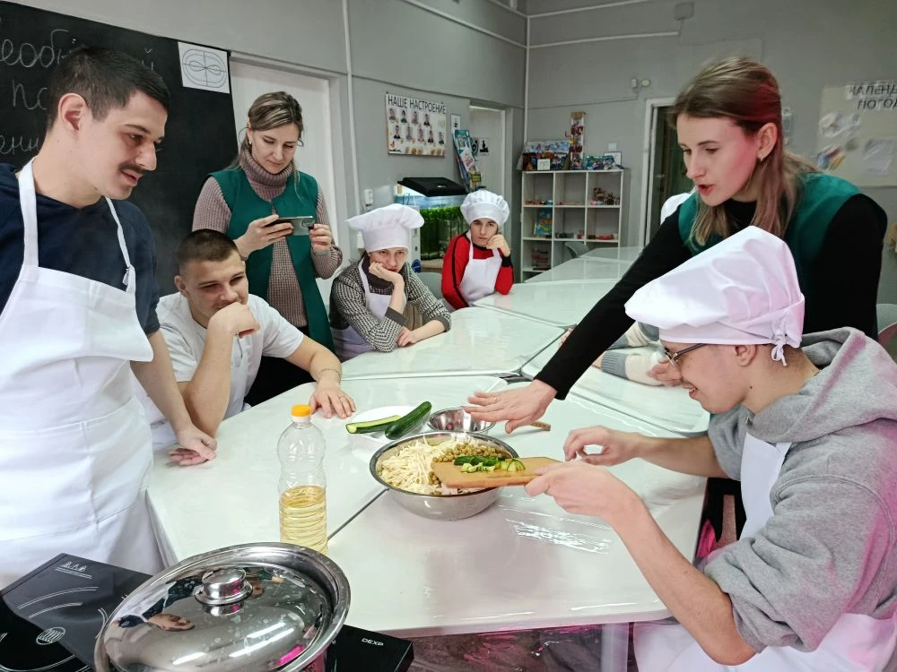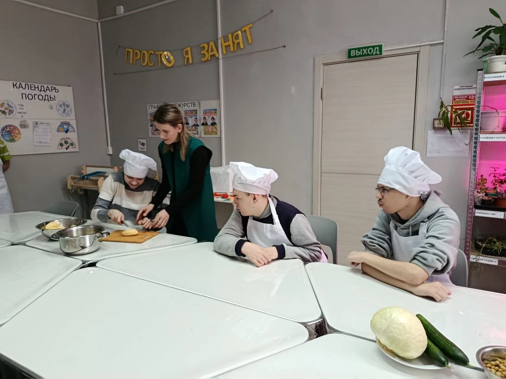 В один из весенних дней Никита, Андрей, Разалина, Катя, Валера, Жора, Валентин, Кирилл и Маша под руководством специалиста по реабилитации Екатерины Красновой готовили весенний обед: картофельное пюре с котлетой и овощной салат. Вместе с ребятами по традиции находилась медицинская сестра, а психолог внимательно следила за процессом и фиксировала каждый шаг на камеру — позже видео появится в телеграм-канале «Просто я занят» Центра социального обслуживания № 1 Волгодонска.