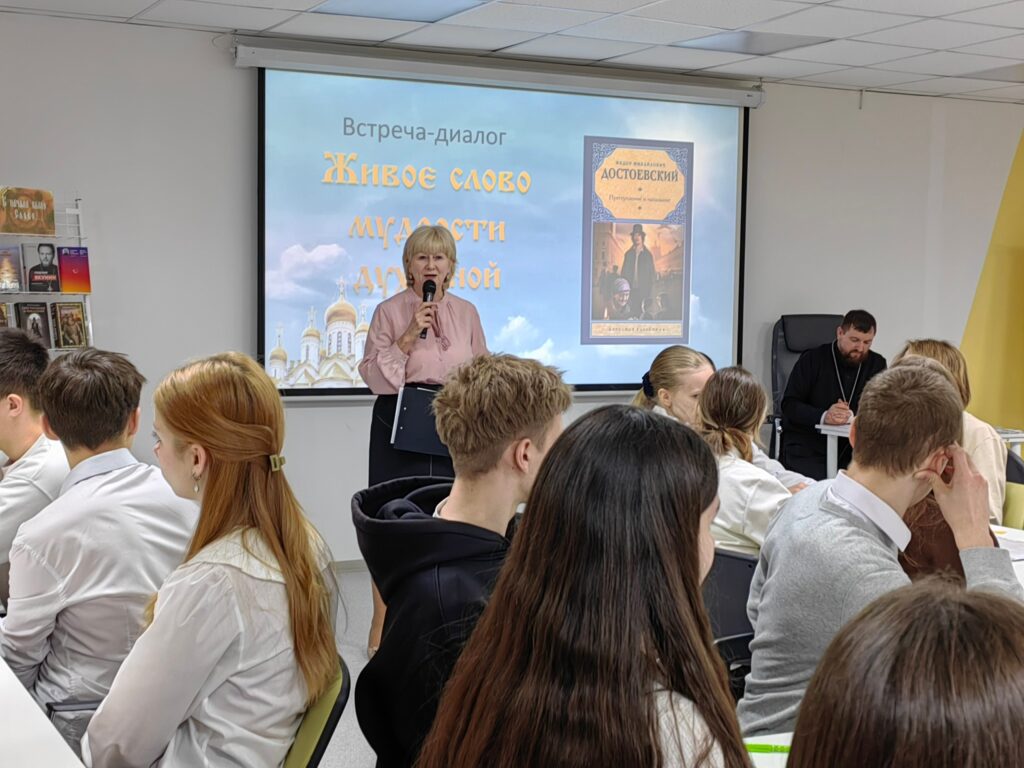 В этом году темой для дискуссии с учащимися 10-х классов школ № 1, 11, 13 и «Шанс» стало эпохальное произведение Ф. М. Достоевского «Преступление и наказание». Модераторами необычного урока выступили клирик Кафедрального собора Рождества Христова иерей Константин Беличенко, педагоги Воскресной школы «Вифлеем» и учителя русского языка и литературы.
