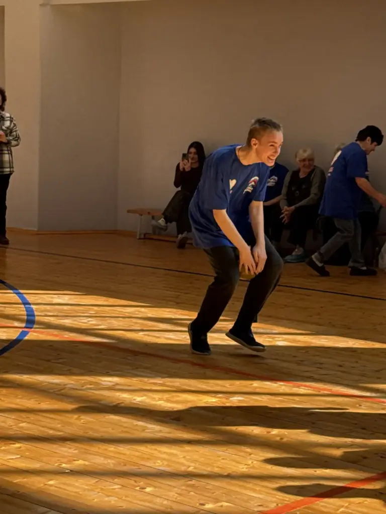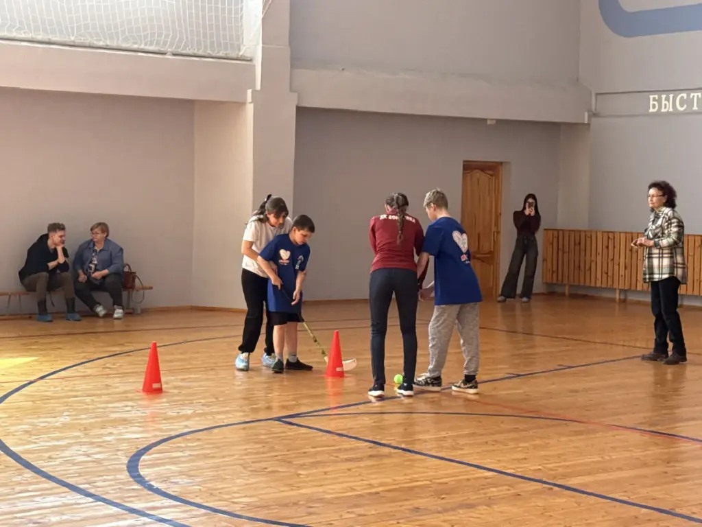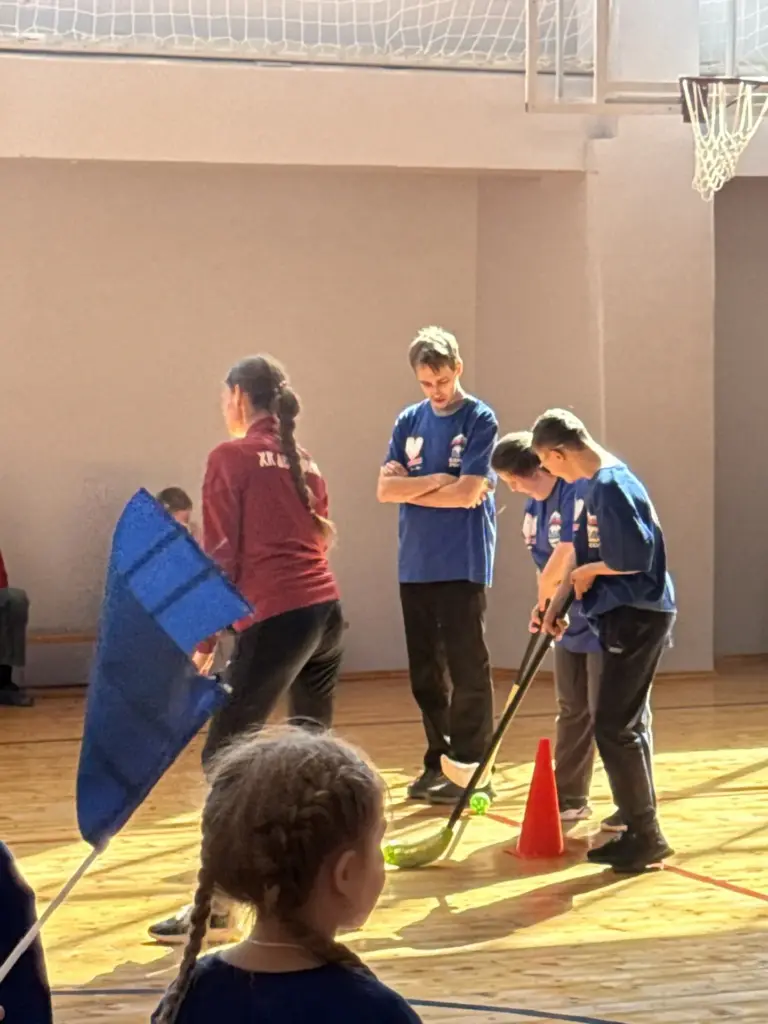 Спортивный зал превратился в арену радости и взаимопомощи. Шестнадцать участников из команды «Молния» (из 19 заявленных — несколько ребят, к сожалению, заболели) с азартом прошли увлекательные этапы и эстафеты. Подготовка длилась целый месяц, и тренеры учли специфику команды: основное увлечение — флорбол.