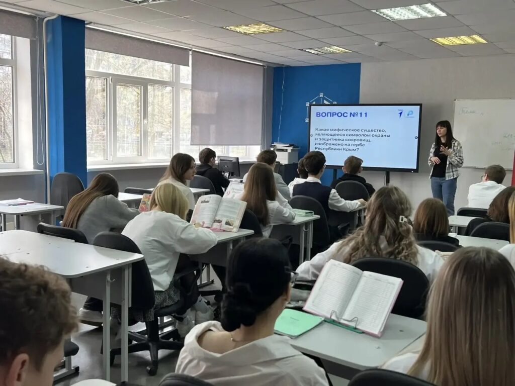 Участники занятия углубились в изучение богатой истории Крыма — от античных греческих колоний и средневековых ханств до ключевых событий XX века и современного периода. Особое внимание было уделено стратегическому положению полуострова на Черном море, его роли в обеспечении национальной безопасности России, а также уникальным природным ресурсам, включая субтропический климат и живописные ландшафты.