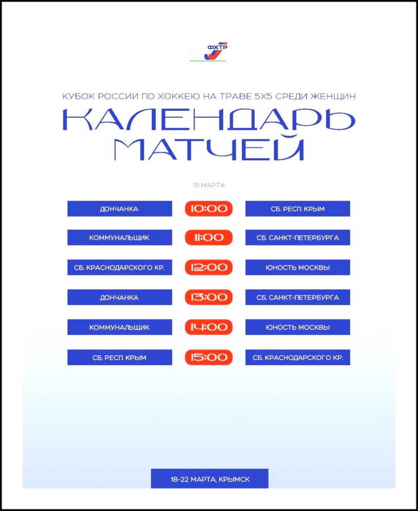 А ведь, здесь же в Крымске с 26 по 30 марта запланирован и 1 тур Чемпионата России по хоккею на траве 5х 5… Что, опять без «Дончанки»?