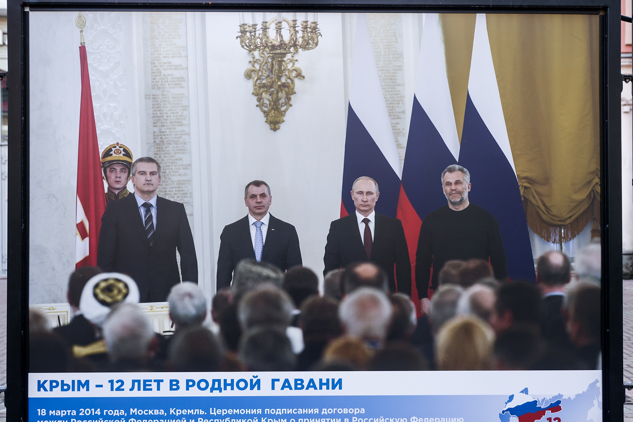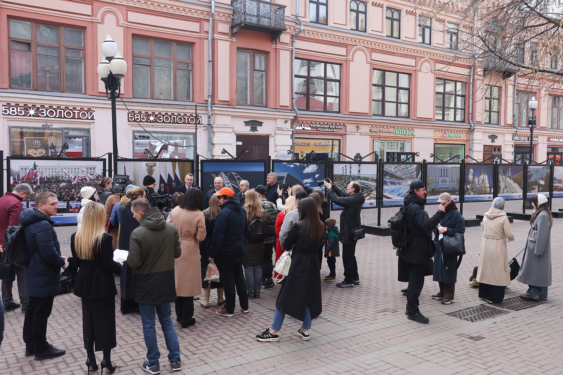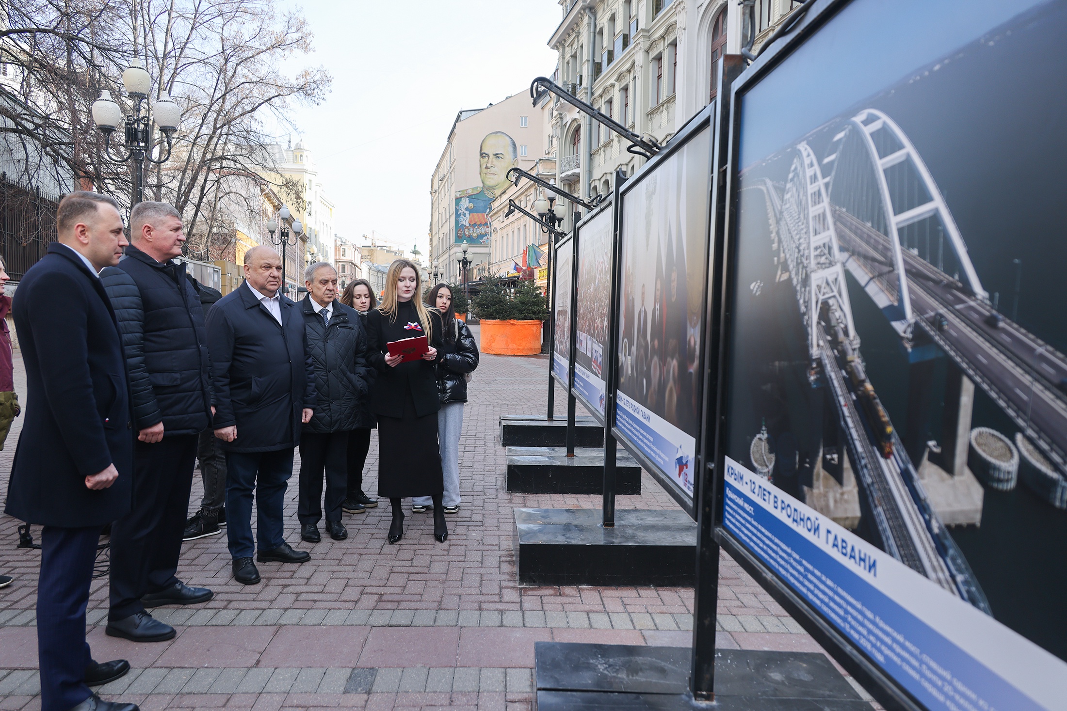 На Арбате открылась фотовыставка, посвященная двенадцатой годовщине воссоединения Крыма и Севастополя с Россией. На фотографиях запечатлены перемены, произошедшие в Крыму и Севастополе за это время — Крымский мост, автотрасса «Таврида», аэропорт в Симферополе, Соборная мечеть и то, что еще на очереди — дороги, школы, парки…
